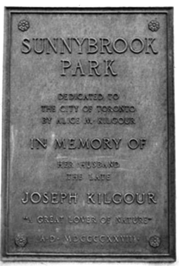 My great-grandfather’s younger brother and business partner Joseph carried on with the paper business after Robert was exiled to Guelph, and also got involved with corn syrup manufacturing, another new product in the early 20th century. He and his wife Alice Grand were childless, and when he died in 1925, Alice decided to gift their “Sunnybrook Farm” country home on the outskirts of town to the City of Toronto. (At the bottom of the plaque, below Joseph’s name, it says “A Great Lover of Nature.”)