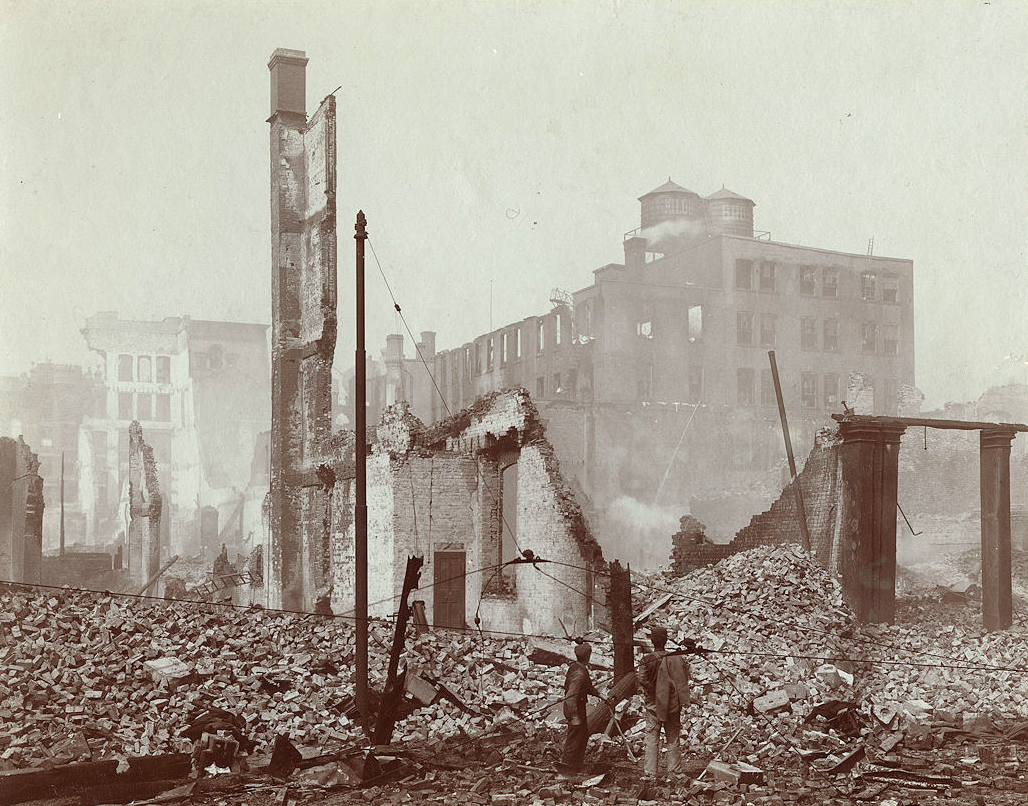 Adversity struck Robert and Joseph in 1904, when the Great Toronto fire burned through the city’s downtown core on the evening of April 19. But the Kilgour brothers had the foresight to install towers on the roof of 21-23 Wellington (see background of this photo), which provided water to protect the building and halt the blaze before it reached Yonge Street. Nearly 100 buildings were destroyed in the calamity, decimating the downtown, but not a single life was lost. The post-fire photos resemble scenes from WWI, ten years later.