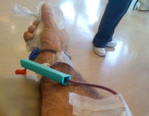 By 8:30 I’m through the screening process, heading for a a right-side donation chair (most donors have a favourite, one arm that just works better than the other). I chat with the nurse, Anna, who is pleasant, polite, and likes to talk about more than the dastardly snowfall we had on the weekend.