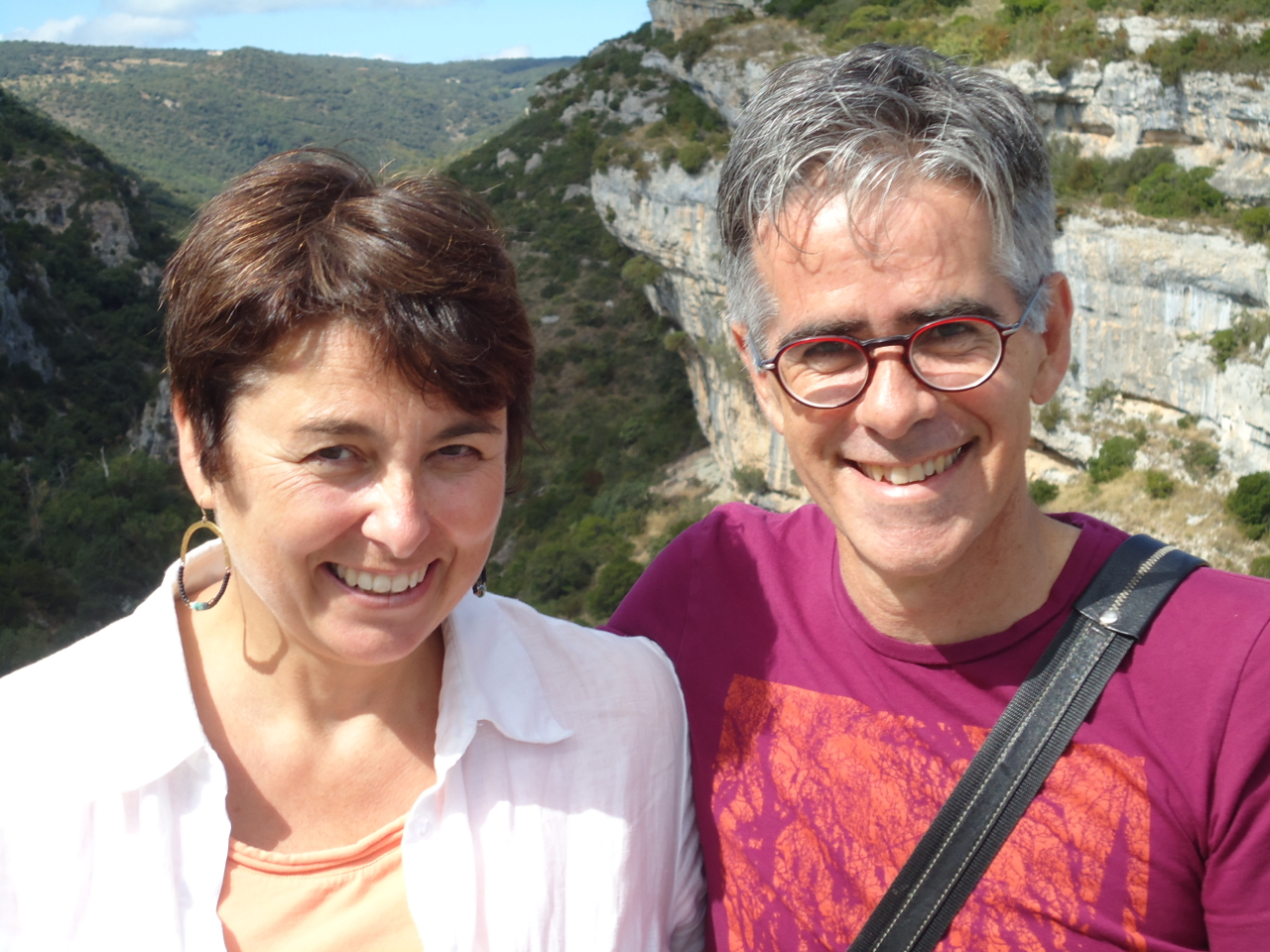 IMG_5347On previous foreign holidays, we’d moved around too much, anxious to see and do everything, over too wide an area. So much time was lost to arrangements, packing, schlepping, navigating and travelling, not to mention the expense of restaurants and hotels, with little time for laundry, or just plain relaxation. So Nic discovered an inexpensive, month-long rental at a rural “gîte” (apartment) on an organic vineyard. With a pool. And a washing machine. Outside a small village called “Villegailhenc” (it took a week or more to master that pronunciation), which itself was 10 kilometres outside Carcassonne. We loved our rural refuge. It gave us a daily routine, places to walk or run, and made us feel like we were really living somewhere, as we got to know the local baker, butcher and grocery store owners. Plus, we had company in the gîte, in the form of the other renters (there were four units) – more opportunity to meet strangers and speak French. We did a one-night trip mid-holiday (to the Mediterranean and very northern Spain), plus another at the end (to Nîmes). But mostly we stayed put and got to know one region very well with dozens of short outings, drawn in highlighter like a spider web on our tattered map. A tour of an olive co-op one day; a few hours picking grapes in the vineyard the next. On the Friday of our first week, we spent three hours in class, another two hours by the pool with our gîte friends in the afternoon, then entertained Dominique and her husband for five hours in the evening – a mind-splitting 10 hours of French immersion in one day. (See our gîte.)