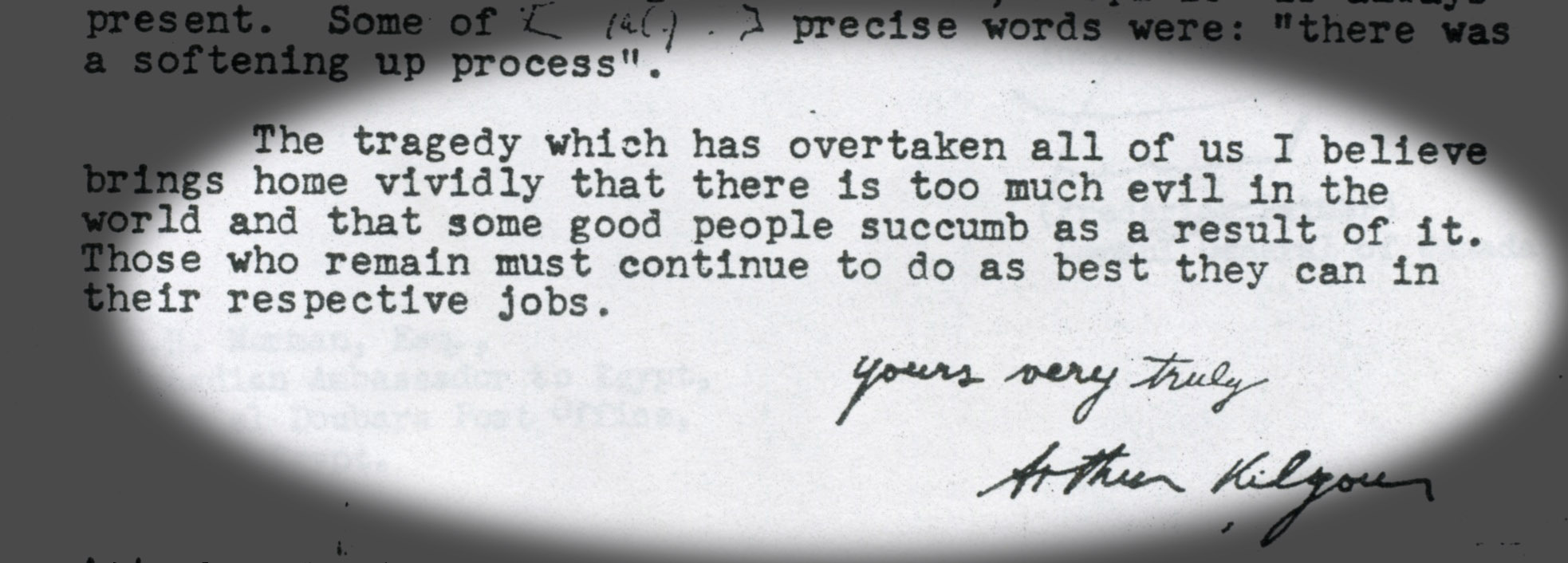 The conclusion to Arthur Kilgour’s report to External Affairs: “There is too much evil in the world.”