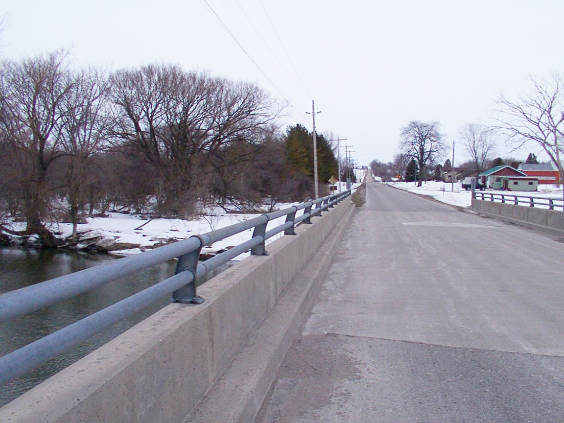 The spot on the Bayfield River bridge from which Steven Truscott watched Lynne Harper get into a car and drive away (click to enlarge)