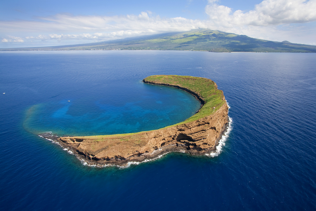 That’s Molokini, off Maui, not hard to tell it’s an ancient volcano cone now barely above the water