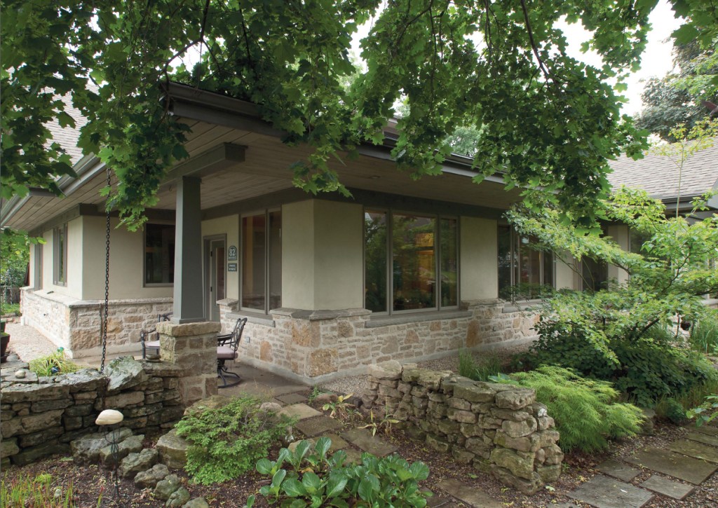 Their spacious house blends in with the lines and colours of their Old University neighbourhood, but its architectural style is unique. You can’t miss their home if you drive west along Water Street toward McCrae House. Their house sits at the corner of Mary Street, a low building with huge overhanging eaves and picture windows facing the intersection.