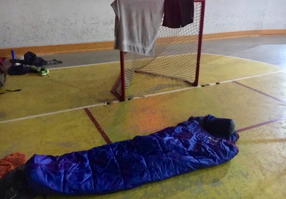 Sleeping anywhere — it’s a super power. Greg DeVos slept on the floor in a community centre, for an hour or two, in the goalie crease it turns out.